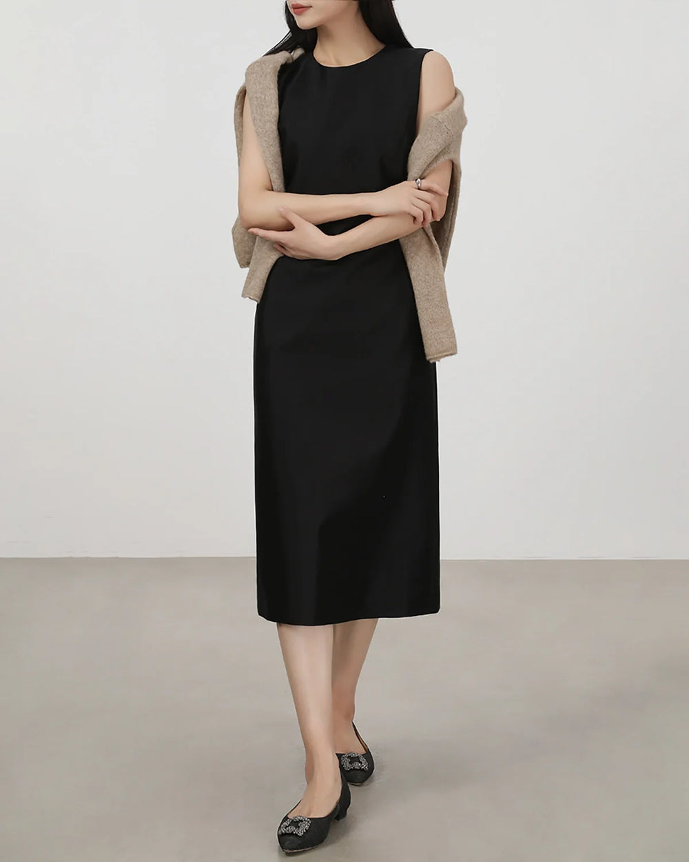 Feels incredibly luxuriousthick, smooth, and soft against the skin. The sleeveless cut is elegant, and the fit drapes beautifully without clinging too much. Perfect for both formal events and casual wear with a blazer.