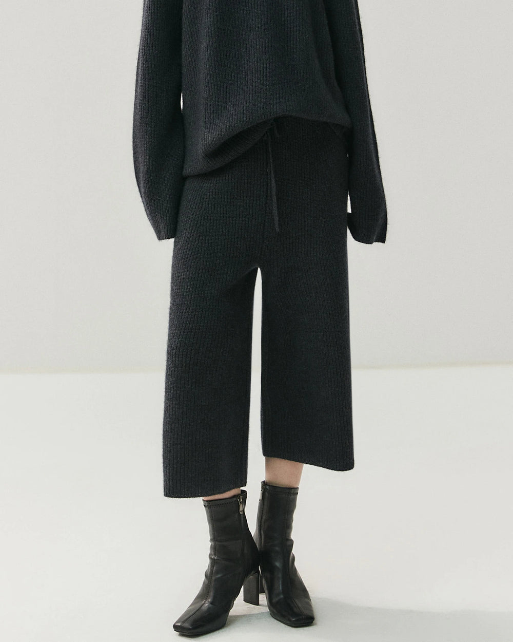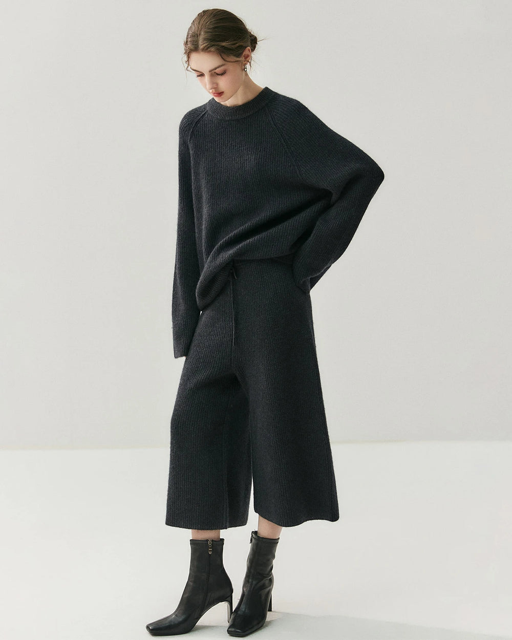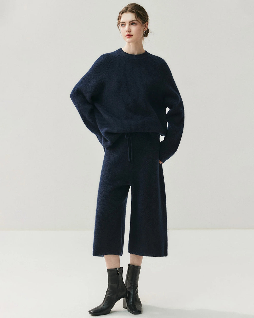 DaisySilkのレディースカシミヤウールセーターセットで、簡単にシックで暖かく。65%の上質ウールと35%のカシミヤを使用したこのセットは、ルーズフィットのラグランスリーブプルオーバーに取り外し可能なフード付き。クロップドワイドパンツと合わせて、リラックス感のある上品なスタイルに。通気性がよく肌に優しい素材で快適な暖かさを提供し、リラックス、旅行、カジュアルストリートウェアに最適。スポーティな着心地とミニマルなエレガンスを融合したタイムレスな一着。