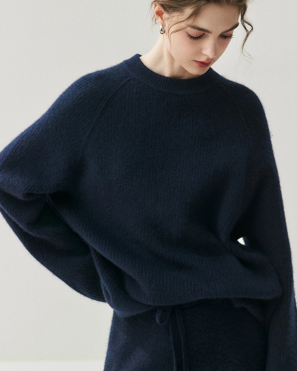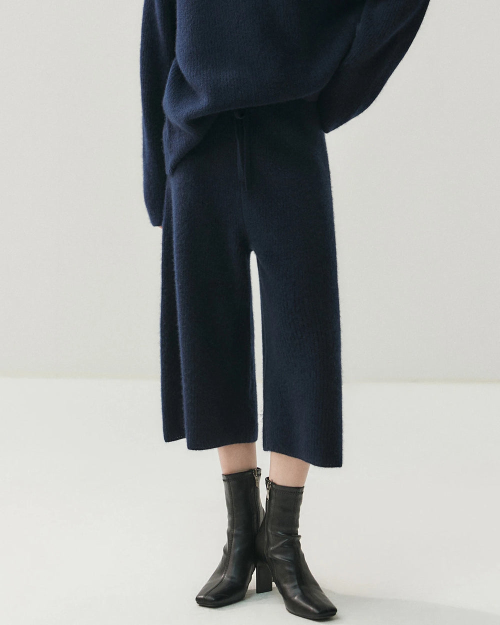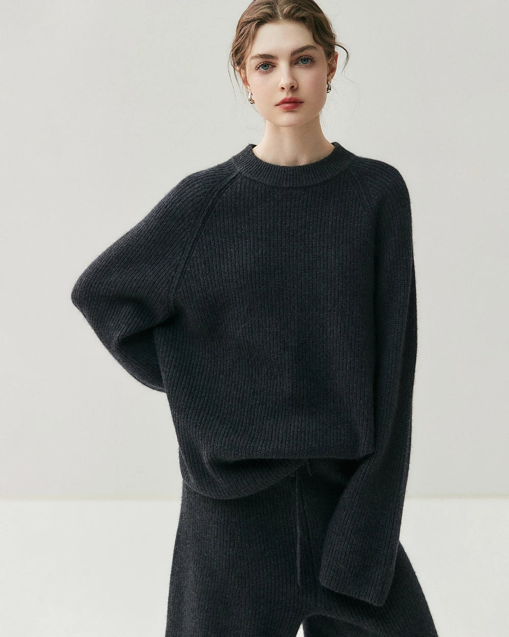 DaisySilkのレディースカシミヤウールセーターセットで、簡単にシックで暖かく。65%の上質ウールと35%のカシミヤを使用したこのセットは、ルーズフィットのラグランスリーブプルオーバーに取り外し可能なフード付き。クロップドワイドパンツと合わせて、リラックス感のある上品なスタイルに。通気性がよく肌に優しい素材で快適な暖かさを提供し、リラックス、旅行、カジュアルストリートウェアに最適。スポーティな着心地とミニマルなエレガンスを融合したタイムレスな一着。