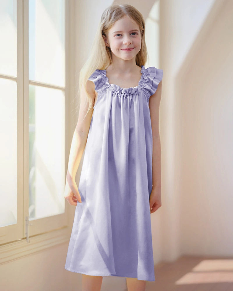 柔らかく軽いナイトウェアが好きな女の子のために、DaisySilkのダブルフリル袖付きシルクナイトガウンは、快適さと優雅さを兼ね備えた魅力的な一着です。この女の子用シルクスリープドレスは、高品質のマルベリーシルクで作られており、通気性が良く肌に優しい素材で、滑らかで摩擦が少ないため、敏感肌の子どもにも適しています。