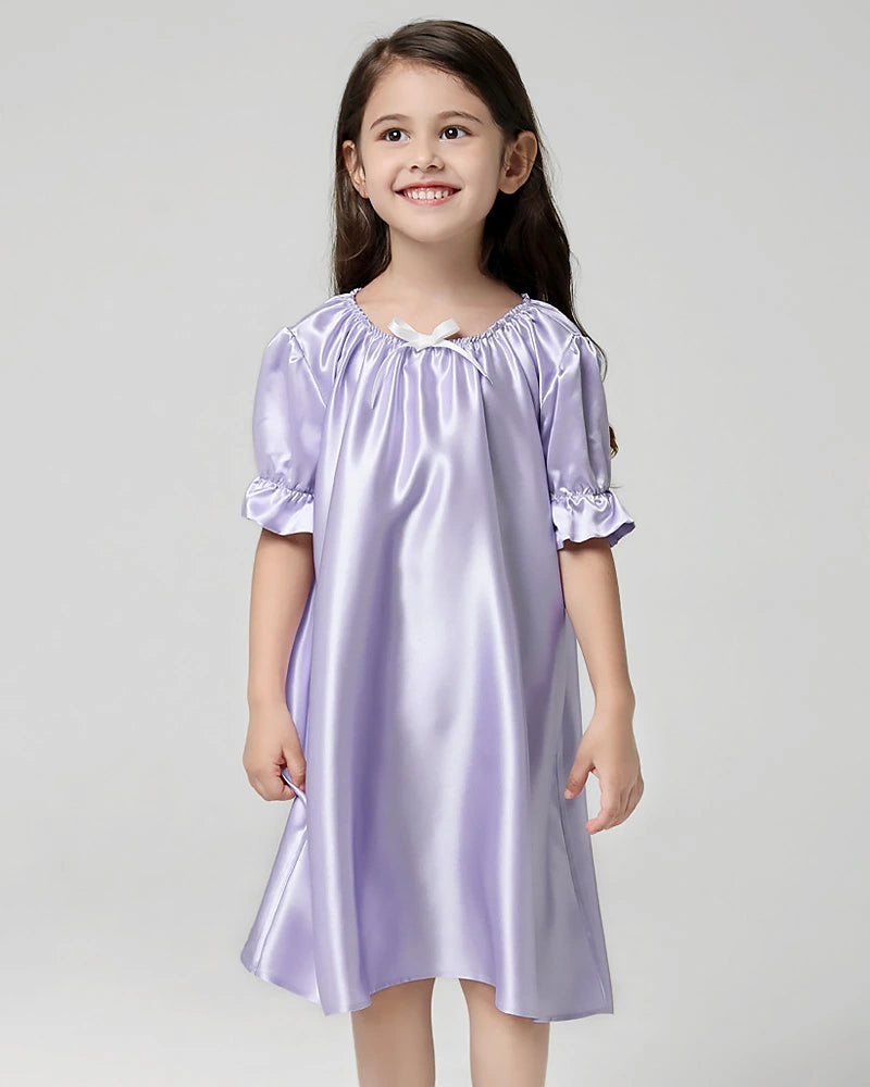 女の子用シルクナイトガウン、キッズシルクスリープウェア、子ども用マルベリーシルクナイトドレスとして理想的なこの一着は、自然な温度調節機能と肌に優しいなめらかな着心地を提供します。スタイルと快適さを両立させたい女の子に向けた、魅力的で心地よいスリープドレスです。