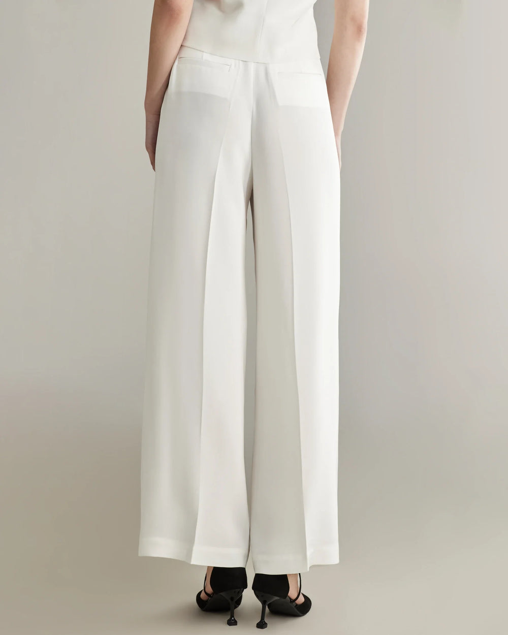 贅沢なハイライズ ワイドレッグ プリーツシルクパンツでワードローブを格上げしましょう。快適さとエレガンスを兼ね備えたデザインで、シルエットを引き立てる魅力的なハイライズウエストと、優雅で洗練された印象を与えるワイドレッグカットが特徴です。最高級のシルク素材で作られており、肌に触れると滑らかで柔らかな質感が贅沢な着心地を提供します。エレガントなフロントプリーツが洗練さをプラスし、パンツの全体的なドレープと動きを美しく引き立てます。