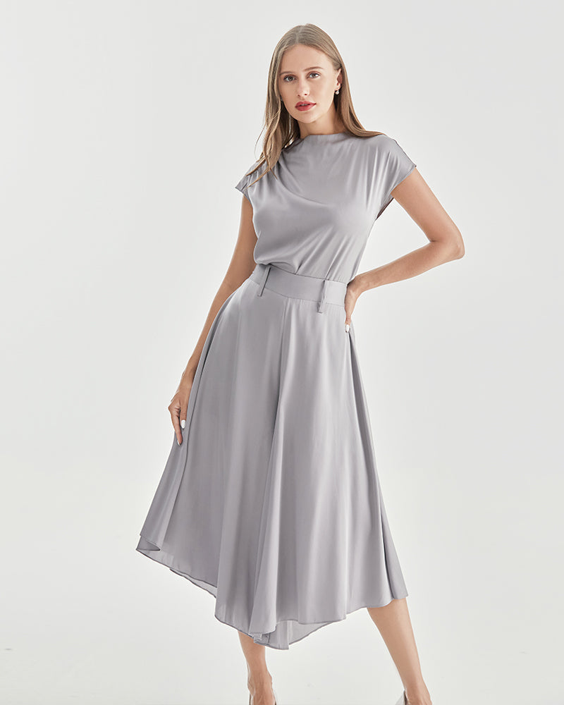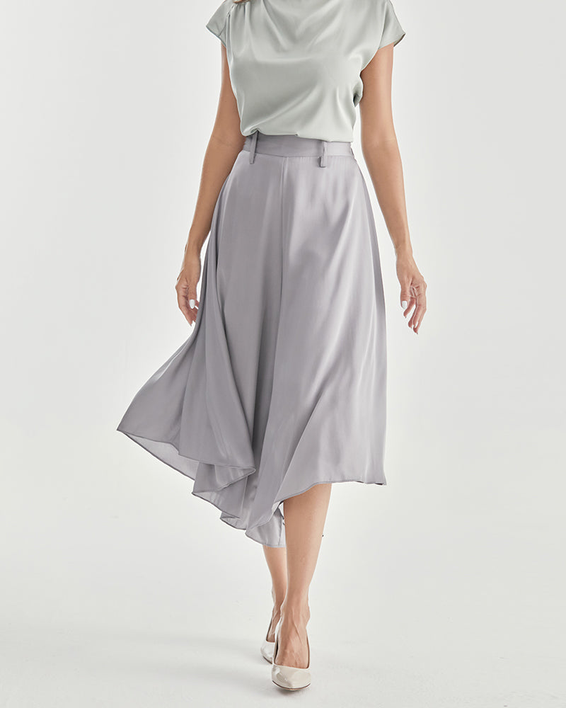 the loose and flowy design of this silk skirt adds a touch of elegance to any outfit