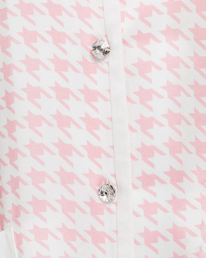 時代を超えた千鳥格子柄:洗練されたモノクロのパレットで表現されたクラシックな千鳥格子柄を纏い、ベッドタイムのスタイルに時代を超えたエレガンスをプラスします。