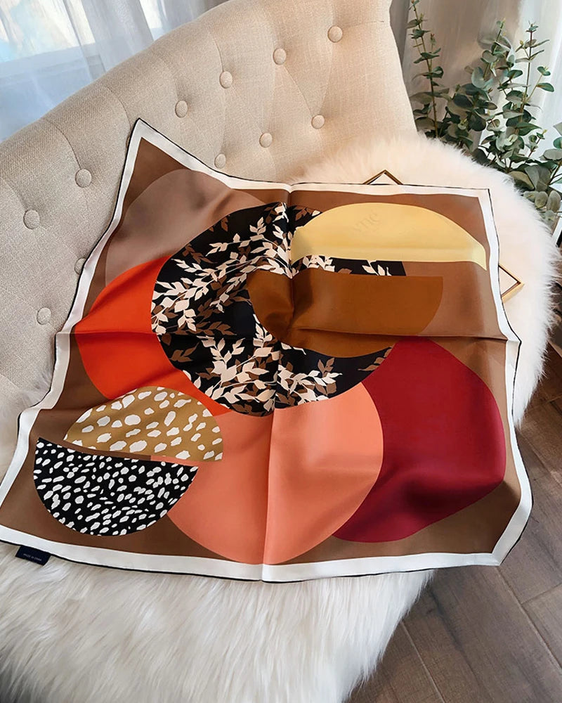 オータムリーフシャドウ ジオメトリック シルクスカーフで季節のエレガンスを纏いましょう。 汎用性の高い65×65cmサイズでデザインされたこの片面プリントのシルククレープデシンスカーフは、繊細な葉の影模様とモダンな幾何学柄を組み合わせています。 柔らかなドレープ感とマットな質感により、秋冬の理想的なシルクアクセサリーとして、カジュアルな装いにもビジネススタイルにも洗練を添えます。