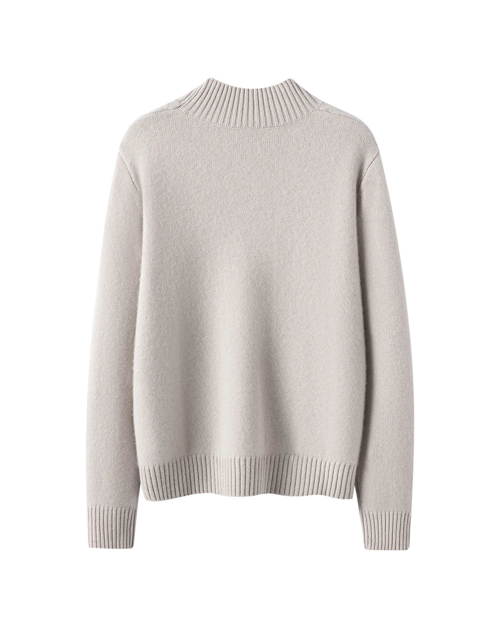 上質な定番アイテムを愛する女性のためにデザインされたこのカシミヤセーターは、ジーンズ、スカート、テーラードパンツと美しくコーディネートできます。モックネックと柔らかな編み地により、重ね着や単独着用に最適で、どの季節でも手軽に暖かさとスタイルを提供します。