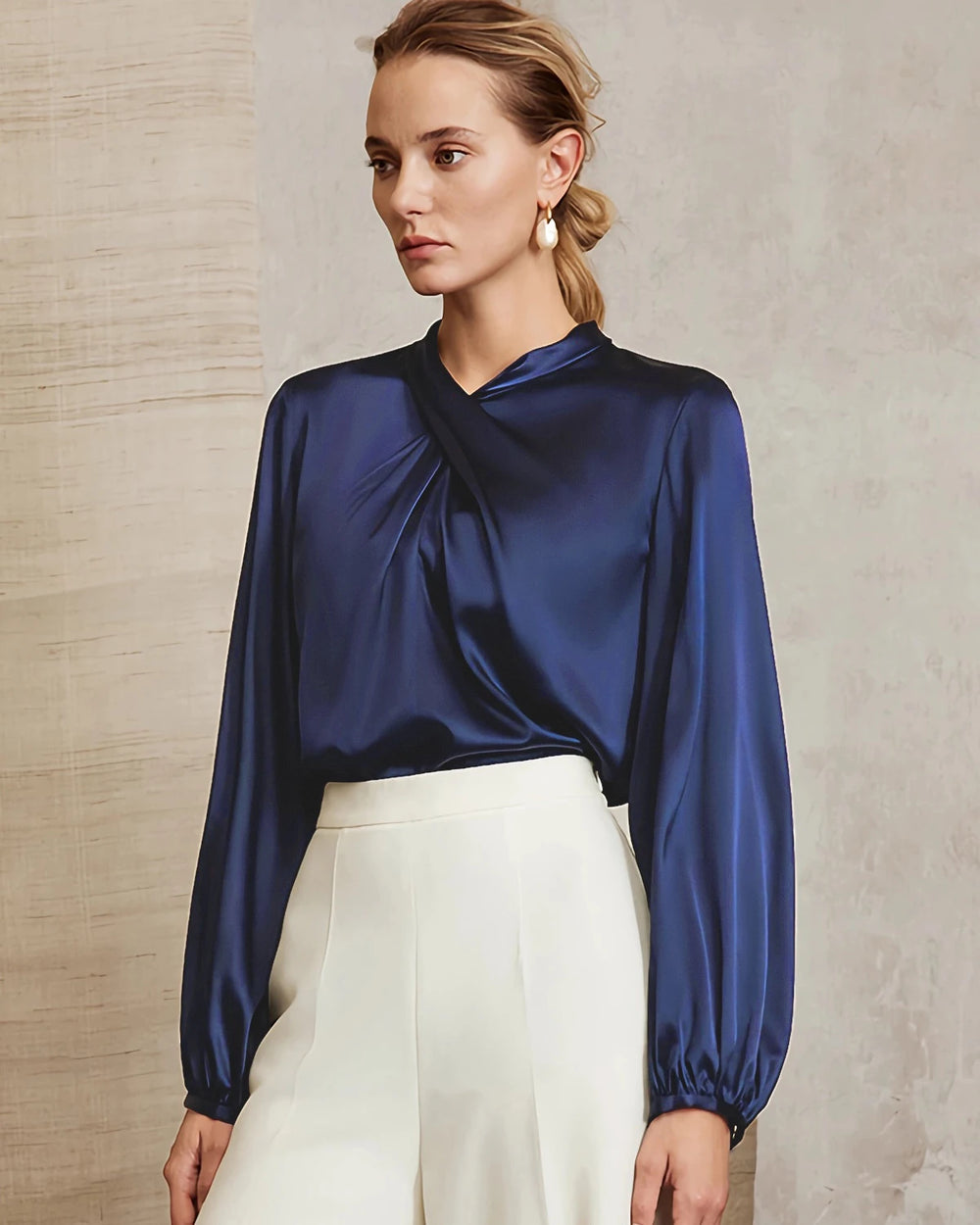 このシルクシャツは、カジュアルなドレストップス、エレガントなレディースシルクブラウス、あるいはフォーマルな場にふさわしい黒や白の洗練されたブラウスとしてスタイリングできます。