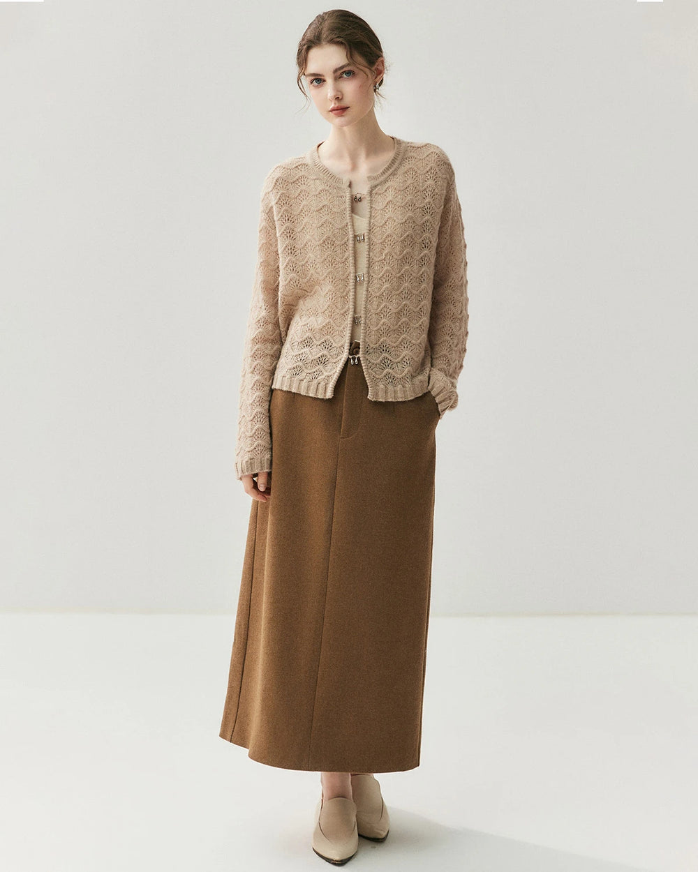 軽やかなレイヤードアイテムとして最適なこのレディースカシミヤカーディガンは、カジュアルにもエレガントな装いにも自然な上品さを添えます。オフィス、週末のお出かけ、季節の変わり目など、さまざまなシーンで活躍する万能ニットであり、女性用ラグジュアリーカシミヤセーターのコレクションに欠かせない一着です。
