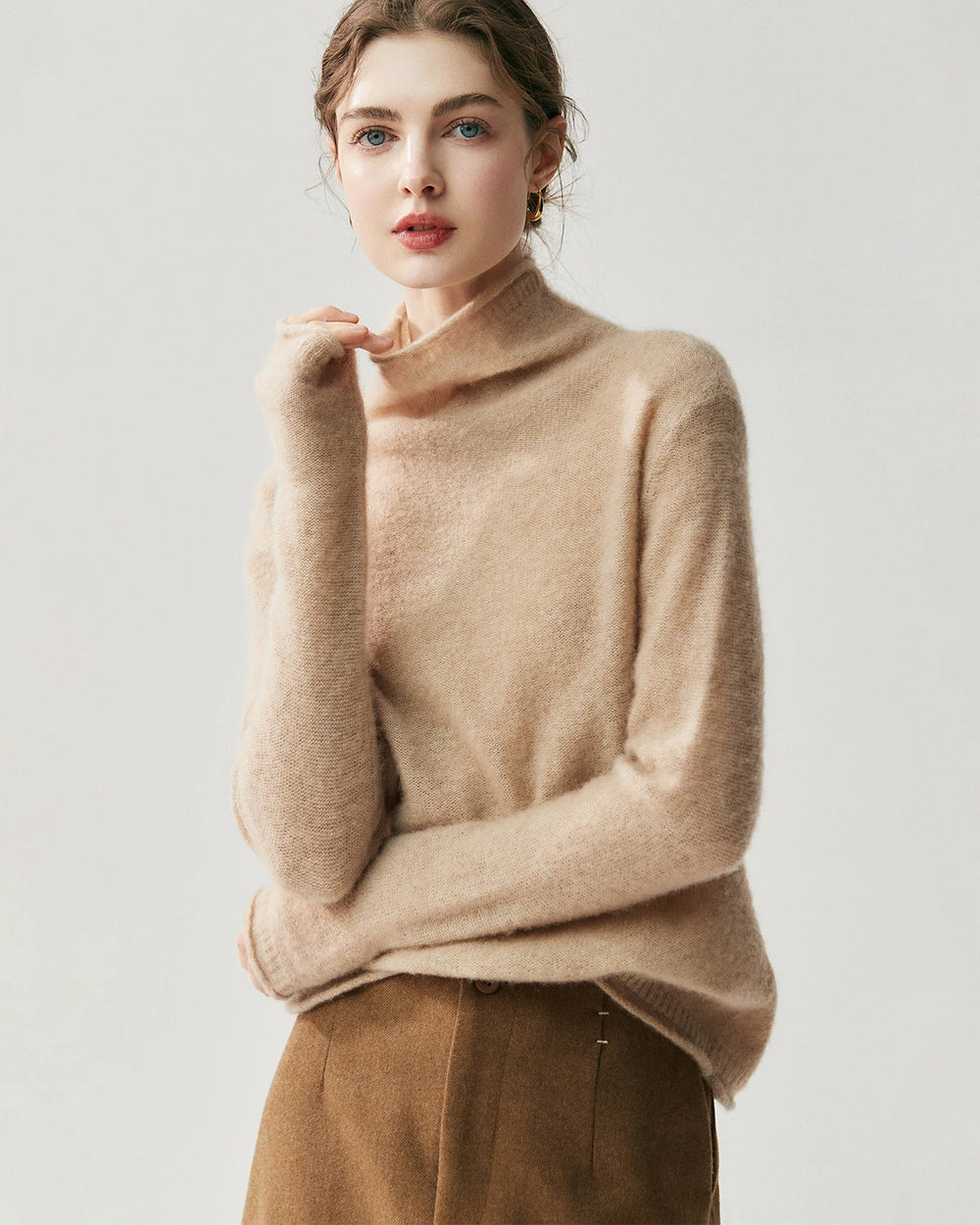 涼しい日や年間を通した重ね着に最適で、このタートルネックセーターはオフィスからカジュアルまで幅広く活躍します。通気性のあるカシミヤセーターの特長を備えた、ワードローブに欠かせない定番アイテムです。