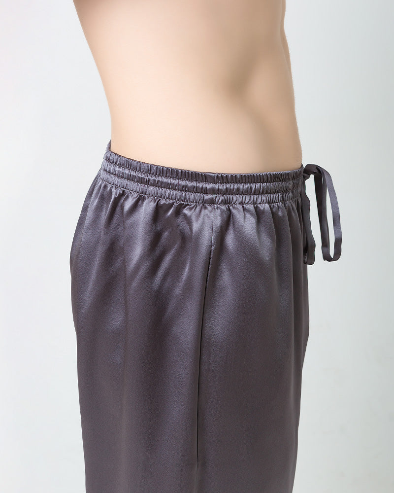 贅沢な快適さと洗練を兼ね備えたメンズシルクパジャマセットのご紹介です。高品質なシルク生地を使用し、スタイリッシュなクルーネックの半袖トップスとゆったりとしたロングパンツのセットで、夜のリラックスタイムにエレガントな印象を与えます。シルクの通気性と滑らかな肌触りが安らかな眠りをサポートし、現代的なデザインが洗練された魅力を添えます。長い一日の終わりやゆったり過ごす週末の朝にもぴったりなラウンジウェアです。スタイルと快適さを兼ね備えたこの贅沢なセットで究極のリラクゼーションをお楽しみください。