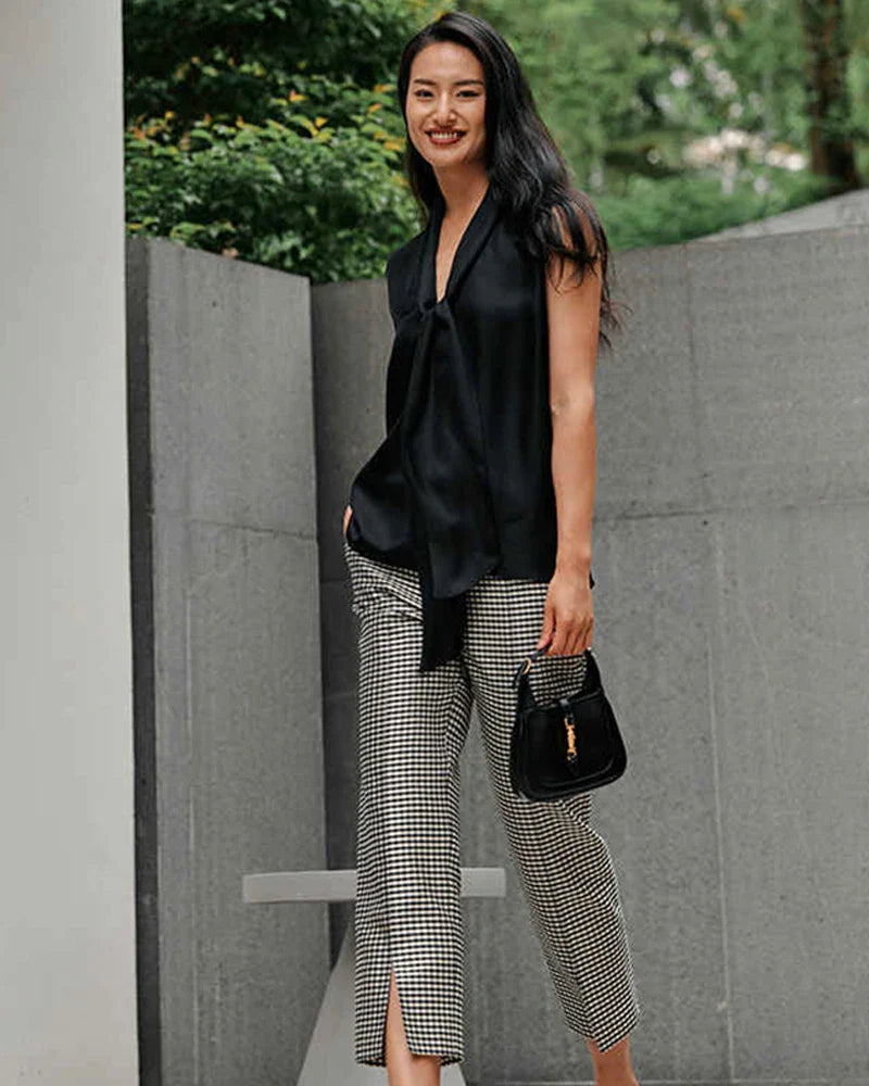 This blouse instantly elevates any outfit. The tie neck adds such a sophisticated touch to my work wardrobe.