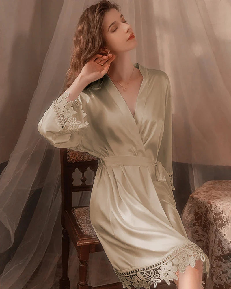I bought the Champagne color for my bridal robe and it looked so elegant. The lace details are delicate and beautiful. It felt really soft on my skin and didn’t wrinkle at all during travel.