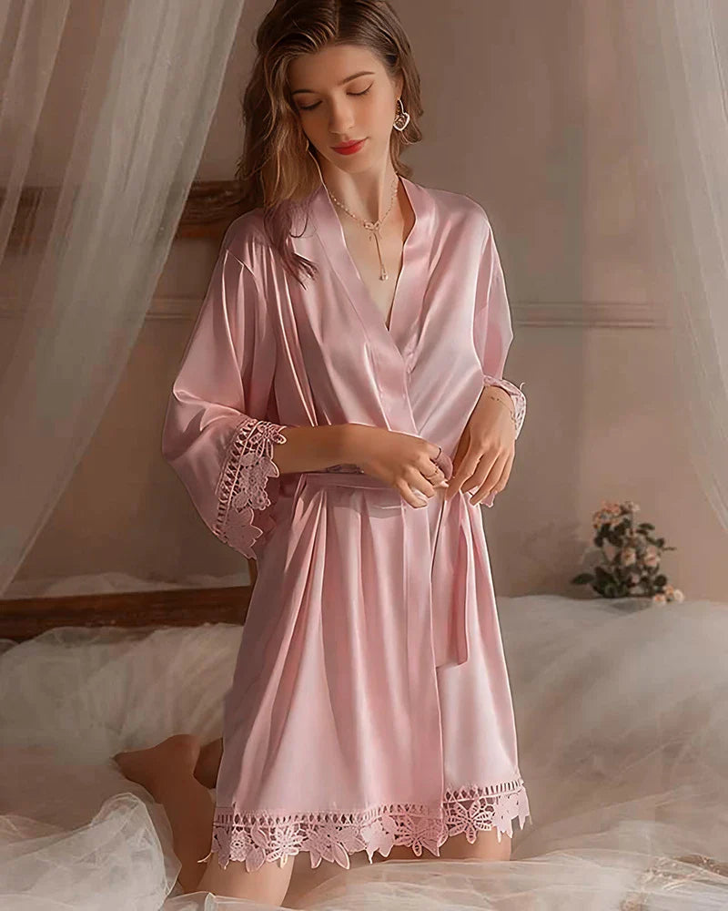 This Rose Pink robe is everything I wanted—romantic, soft, and elegant. I wore it during my anniversary trip and felt so feminine. The fit is flattering and not too short.