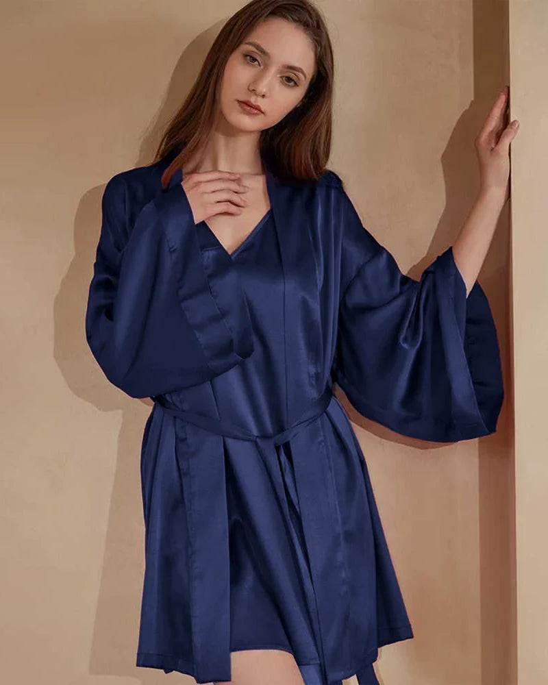 このショートシルクローブは、軽やかな着心地と美しいシルエットが特徴で、内側と外側に結び紐があり、太もも中ほどの丈感で設計されています。暖かい季節や重ね着にもぴったり。ピンク、ホワイト、ブラックなど、どのカラーを選んでも、シンプルでエレガントなスタイルはブライダルパーティーの誰にでも似合います。