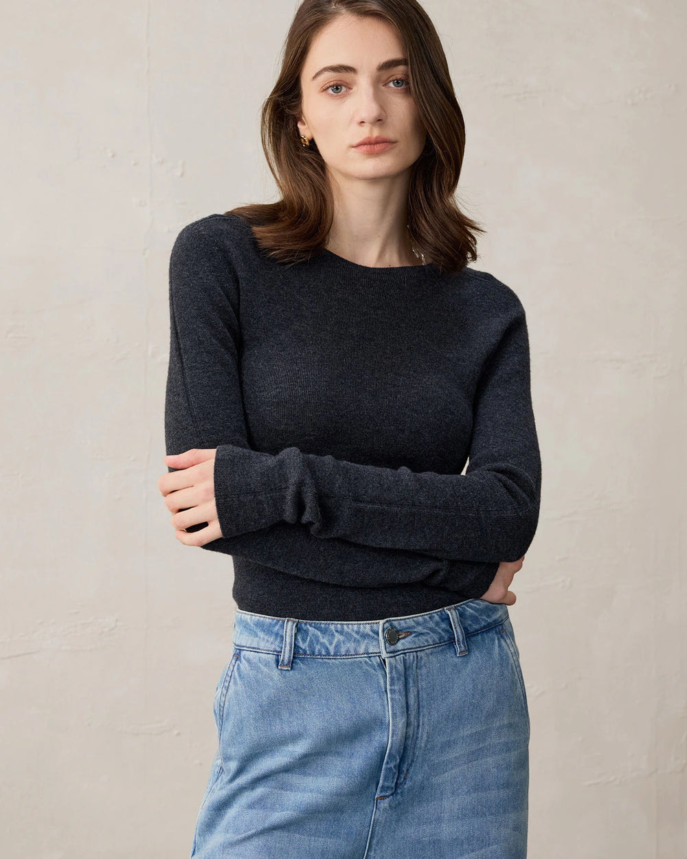 フィット感のある「Fitted Embrace」カシミアセーターは、上品な印象でボディラインを美しく引き立てます。ペンシルスカートとヒールで洗練、スキニージーンズとアンクルブーツでシックにも。レイヤードネックレスやブレザー、ウエストベルトでアクセントを加え、イヤリングとアップヘアで上品に仕上げて。