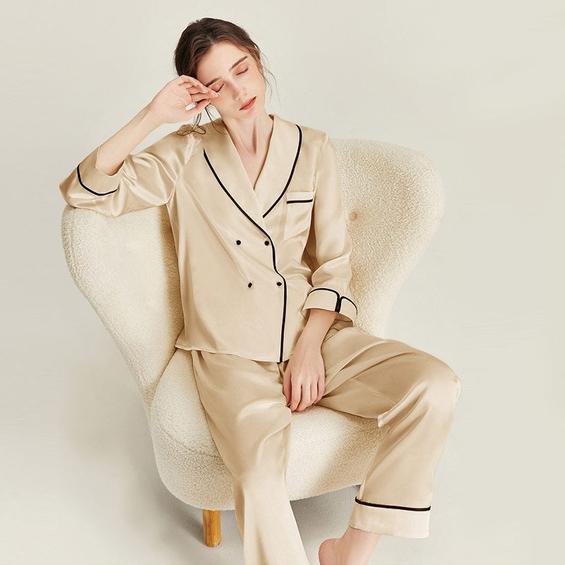 当社のシルクパジャマには、高品質で洗えるシルクパジャマ、シルクナイトガウン、シルクローブ、カップル用お揃いパジャマセット、そして当社限定のラグジュアリーシルクブライダルローブ・ブライダルパジャマシリーズが含まれます。すべての製品はOEKO-TEX®のMADE IN GREEN認証を取得しており、有害な化学物質を使用せず、環境に優しく社会的に責任ある施設で製造されています。日常から特別な夜まで、100%純粋なマルベリーシルクで比類なき快適さ、スキンケア、エレガンスをお楽しみください。毎晩、美しく眠りましょう。