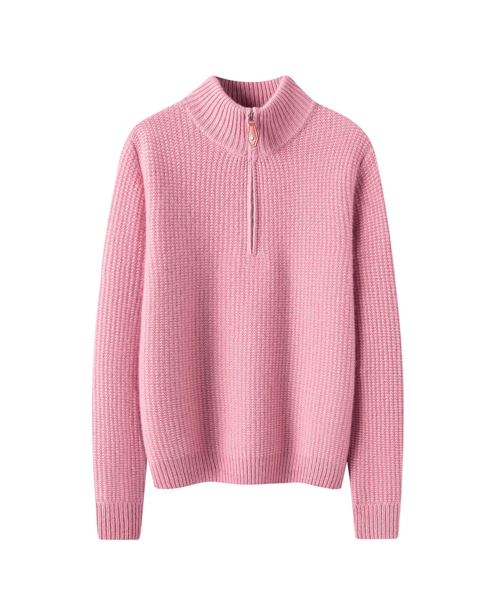 モダンなハーフジップネックに、レザーのプルタブをあしらった上品なデザイン。ファスナーを閉じれば暖かく、少し開ければリラックス感のあるカジュアルな印象に。洗練されたシルエットで美しいラインを演出し、ミニマルな高級感とトレンド感を兼ね備えたカシミヤプルオーバーです。
