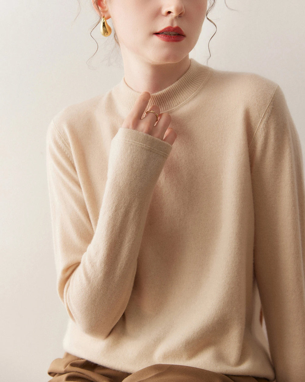 ただし、繊維が非常に細くデリケートであるため、着用や摩擦により自然に小さな毛玉ができることがあります。これは繊維の正常な特性であり、欠陥ではありません。カシミヤ専用の洗剤で優しく手洗いし、カシミヤコームで時折ブラッシングすることで毛玉は簡単に管理でき、セーターを滑らかで柔らかく、美しい状態に保つことができます。カシミヤセーターを選ぶことは、耐久性と時代を超えたエレガンスを兼ね備えた衣服への投資を意味し、品質と長持ちを重視する女性にとって、ウールよりも賢い選択となります。