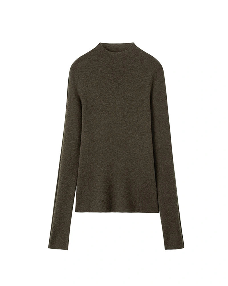 この軽量カシミヤセーターは、上品な小さめのモックネックとスリムで女性らしいシルエットが特徴です。シームレスなベースレイヤーとして設計されており、単独で着用することも、コートやブレザーの下に重ねることもできます。ブラック、ホワイト、キャメルなどのクラシックカラーで展開され、ミニマルなエレガンスを体現しています。