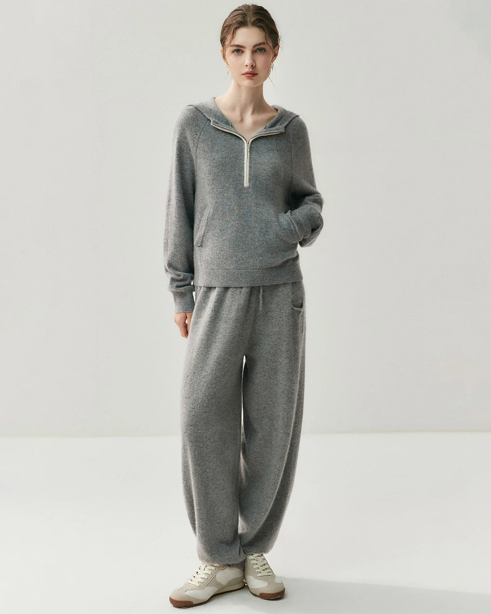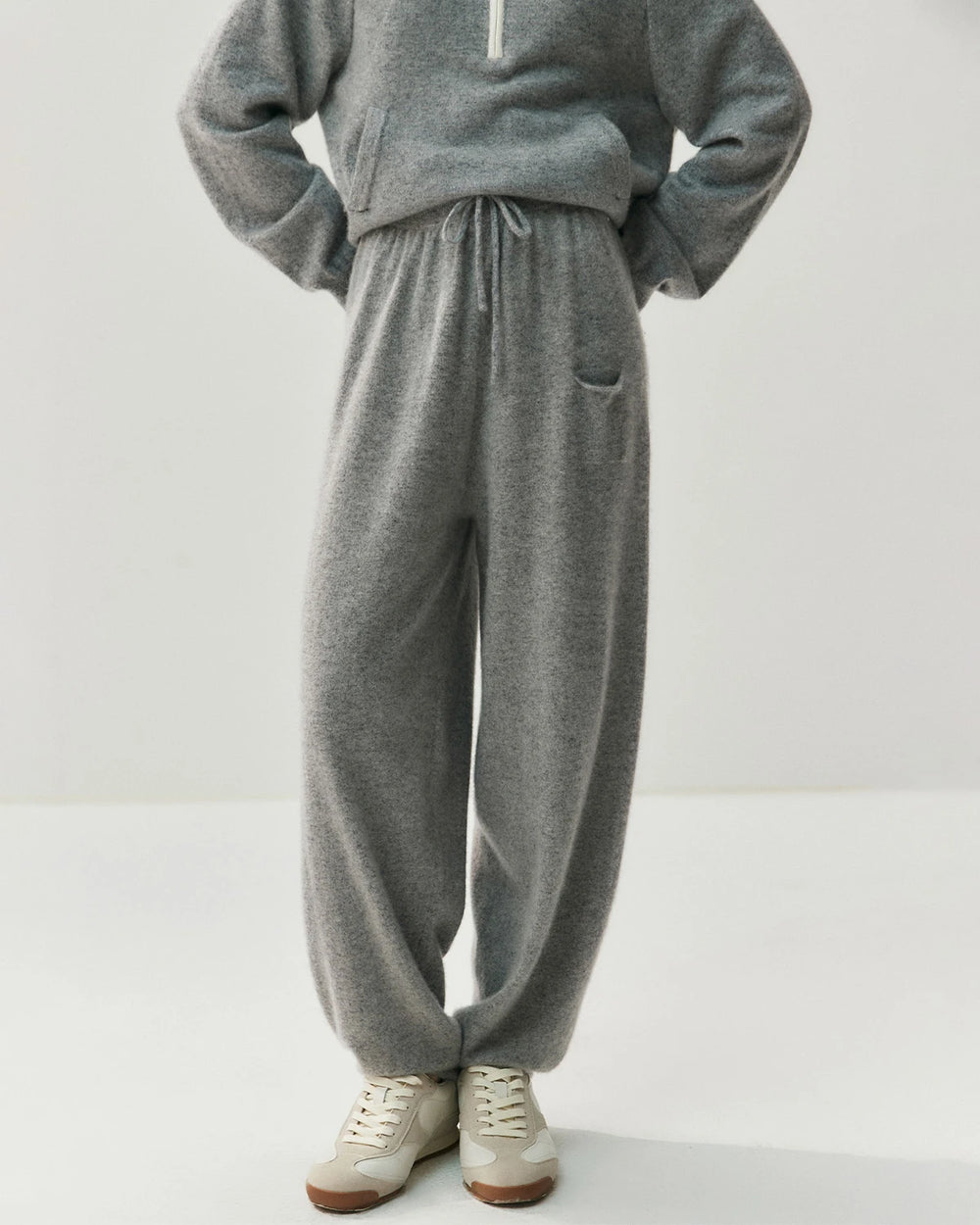快適さと美しさを両立するようデザインされたDaisySilkのレディース カシミヤブレンド ドローストリングパンツ。柔らかく通気性の高いカシミヤ混ニット素材を使用し、日常に溶け込む上品で心地よい着用感を実現しました。ウエストの調節可能なドローストリングが理想的なフィット感を提供し、片側のポケットとややテーパードした裾が洗練されたモダンな印象を演出。リラックスタイム、カジュアルな一日、または旅行にも最適な万能アイテムです。