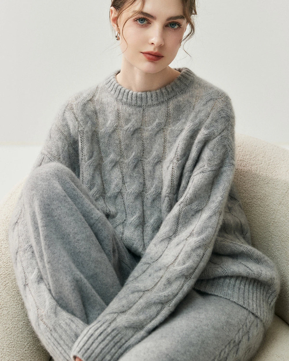 クラシックなケーブル編みと定番のクルーネックを採用したオーバーサイズプルオーバー。立体感のある編地とゆったりシルエットが、ラグジュアリーなカシミヤセーターの優雅さと快適さを表現しています。