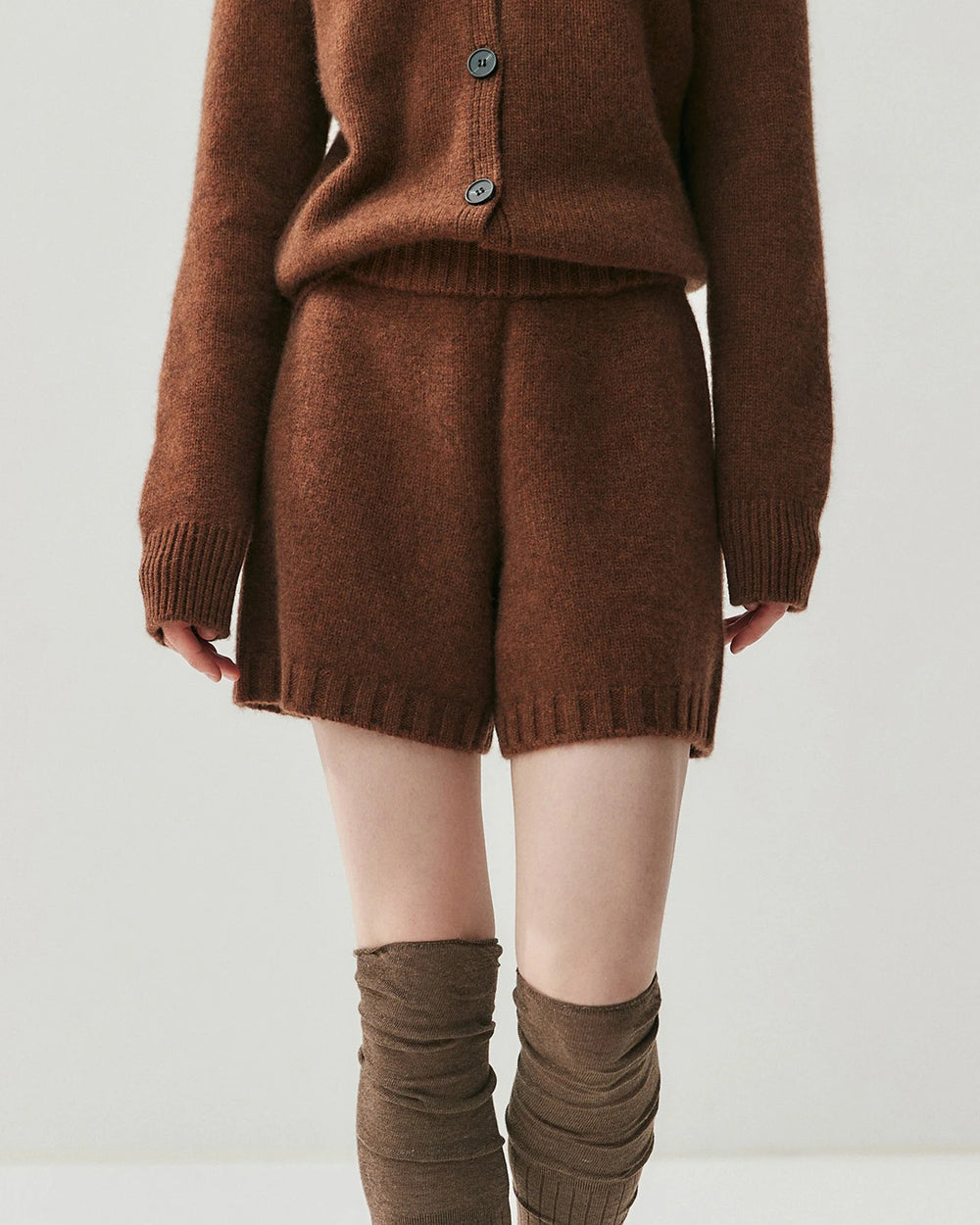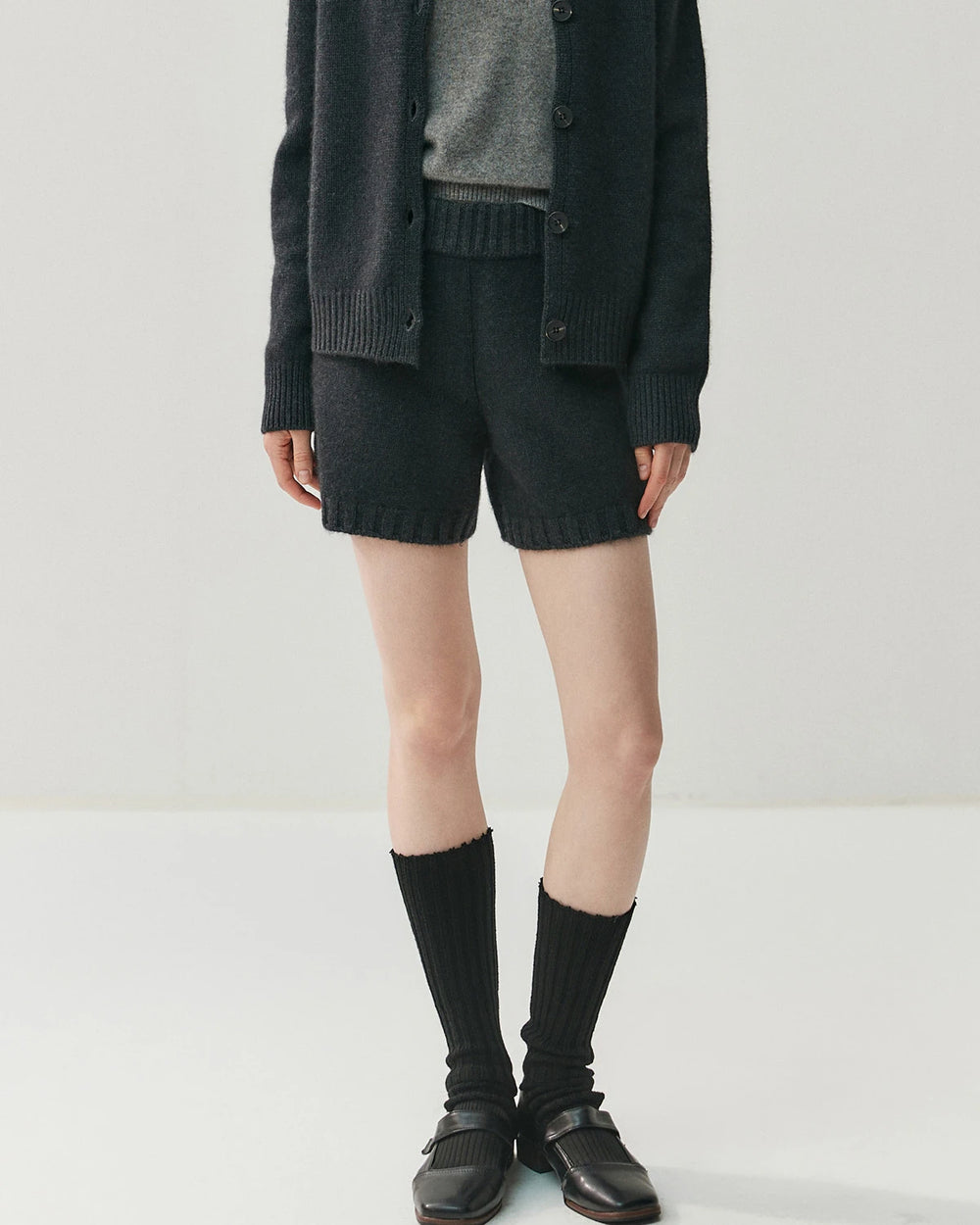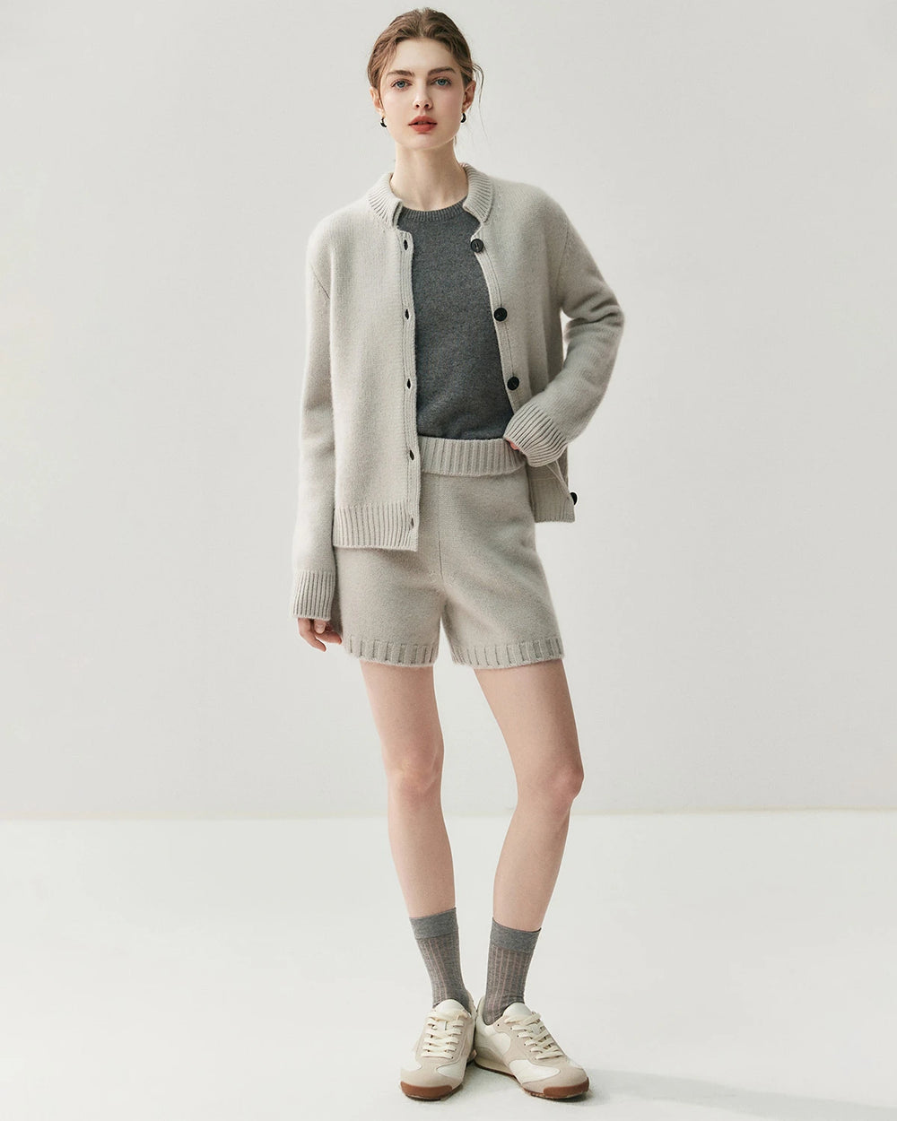 DaisySilkのカシミヤウール ニット カーディガン&ショートパンツセットで、快適な上品さを体験。