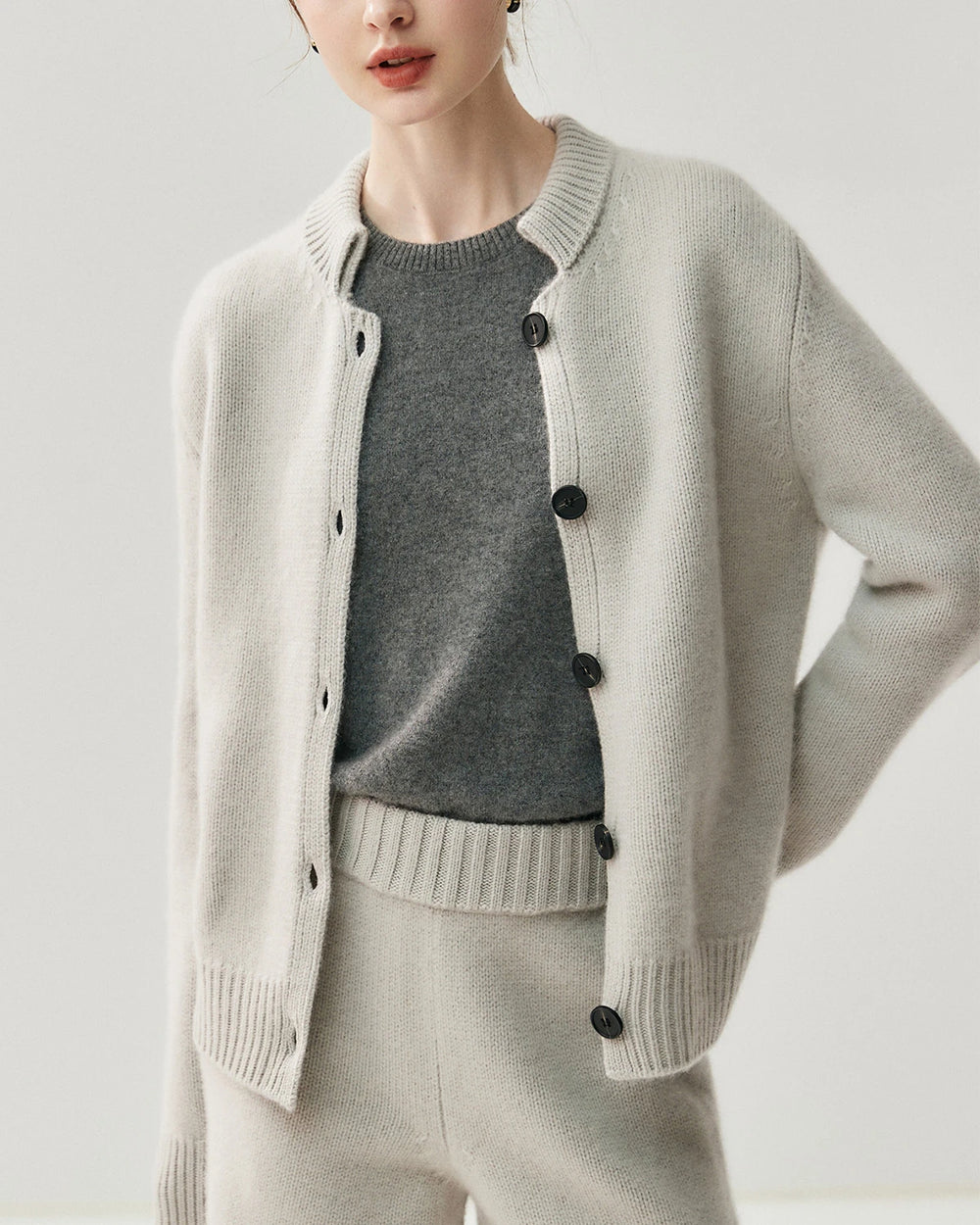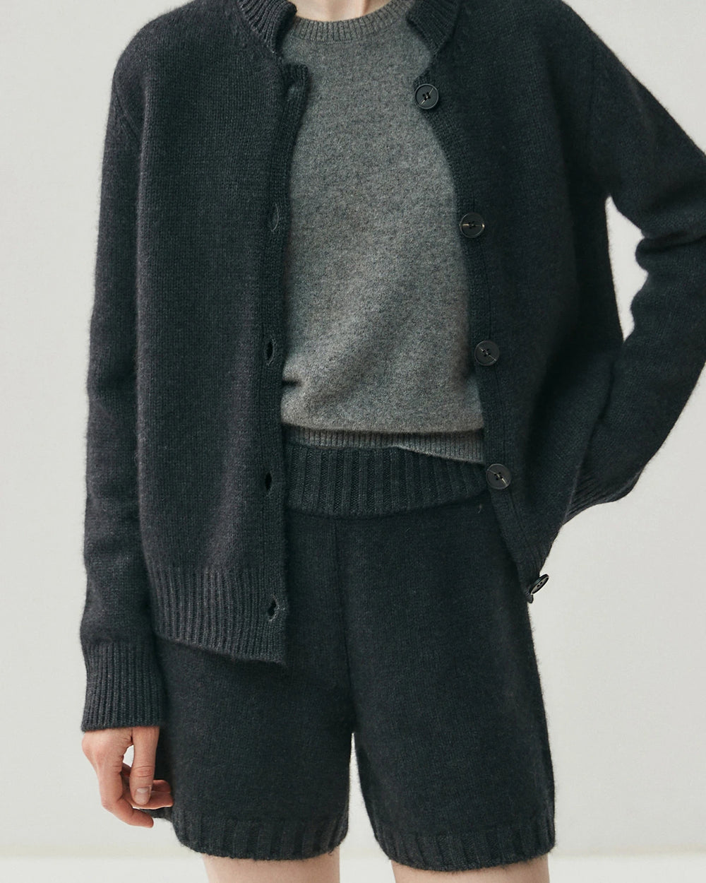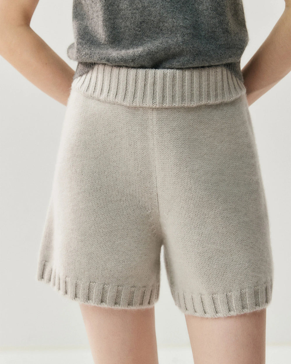 DaisySilkのカシミヤウール ニット カーディガン&ショートパンツセットで、快適な上品さを体験。