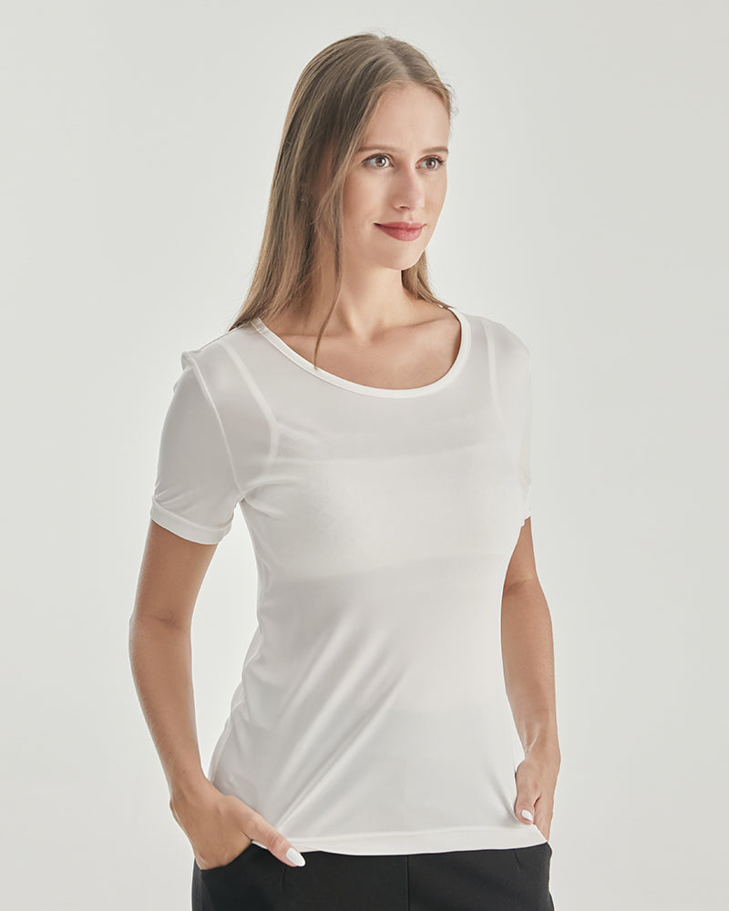I like how the slim fit T-shirt hugs my body without feeling too tight or restrictive.