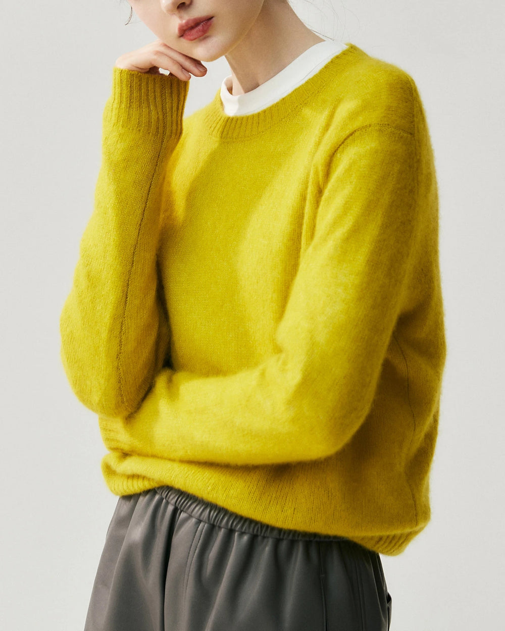 このミニマリストのクルーネックプルオーバーは、シンプルな無地編み構造とモダンなスリムリラックスフィットが特徴です。重ね着が簡単にできるように設計されており、タイムレスなレディースカシミヤセータースタイルを表現し、あらゆるワードローブに控えめなエレガンスを提供します。