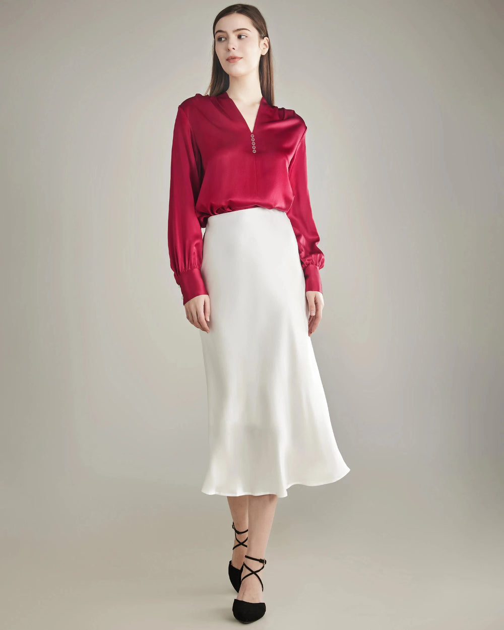 The shirt is very versatile, and the silk fabric is so comfortable. Love it, will definitely repurchase.