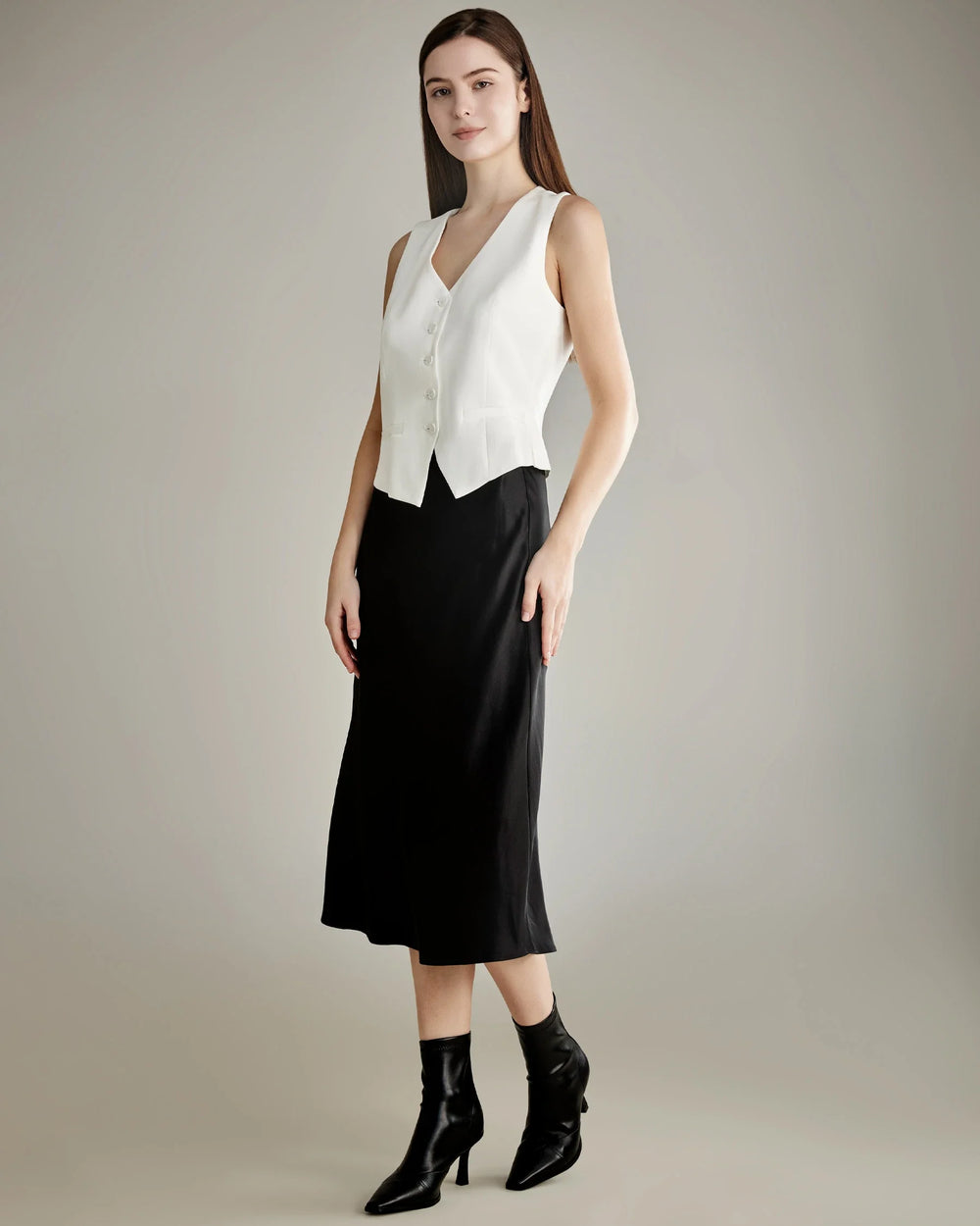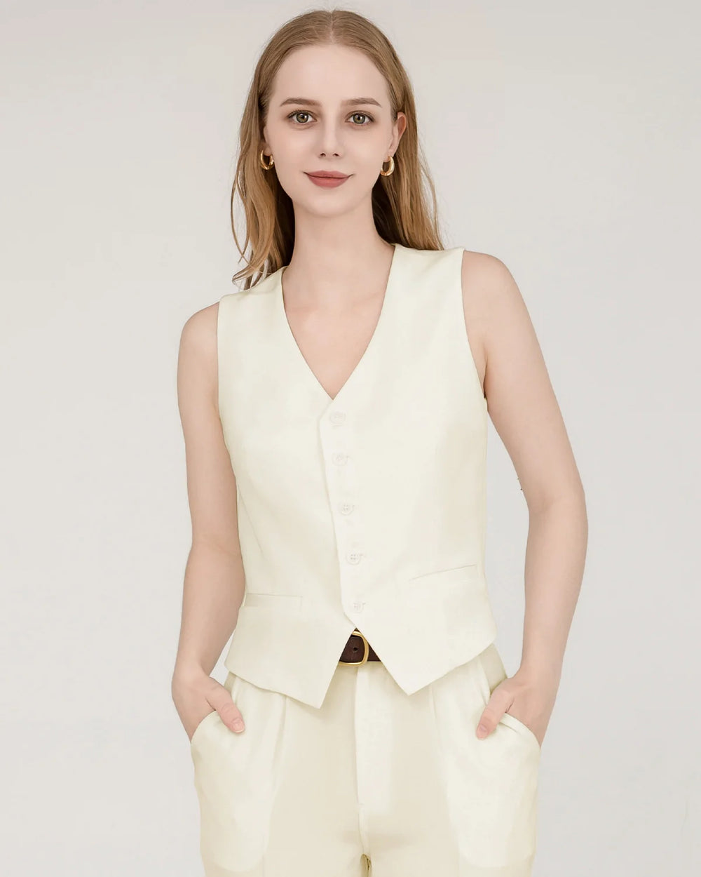 最高級シルクで仕立てたラグジュアリーなピュアシルクスーツベストで、洗練されたスタイルをお楽しみください。